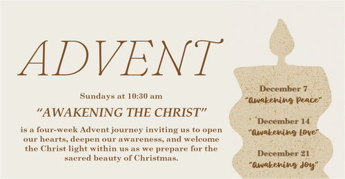 This Christmas Eve, “Awakening the Christ” invites our community into a sacred experience of reflection, renewal, and spiritual remembrance. We honor the Christ light, born in Bethlehem and continually emerging within each of us as the living presence of love, wisdom, and peace. Together, we’ll celebrate this divine spark that unites us all, and affirm our commitment to carry that light into the world through our thoughts, words, and actions.